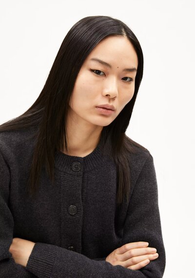 Regular price £850. Ivory. Find Your Size. Add to Bag. Add To Wishlist. Usually dispatched within 7 Working Days. More colours available upon request. All items are made to order in our atelier. Cocoon sleeved, cropped top with faux placket and high neck in ivory. Styled with the Mari trousers in black and Kimberley knit skirt in navy.