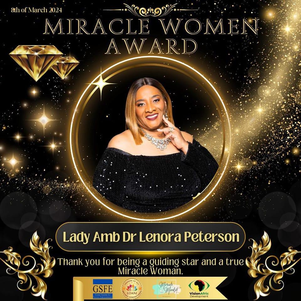 Lady Amb Dr. Lenora Peterson was 2023 Top GlobalAmb and Humanitarian by (IAOTP)