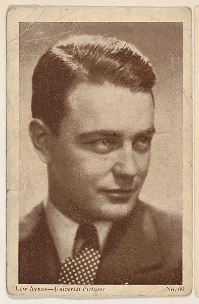 Lew Ayres (1908-1996) became known to the public when he portrayed the leading character in the epic war film All Quiet on the Western Front.