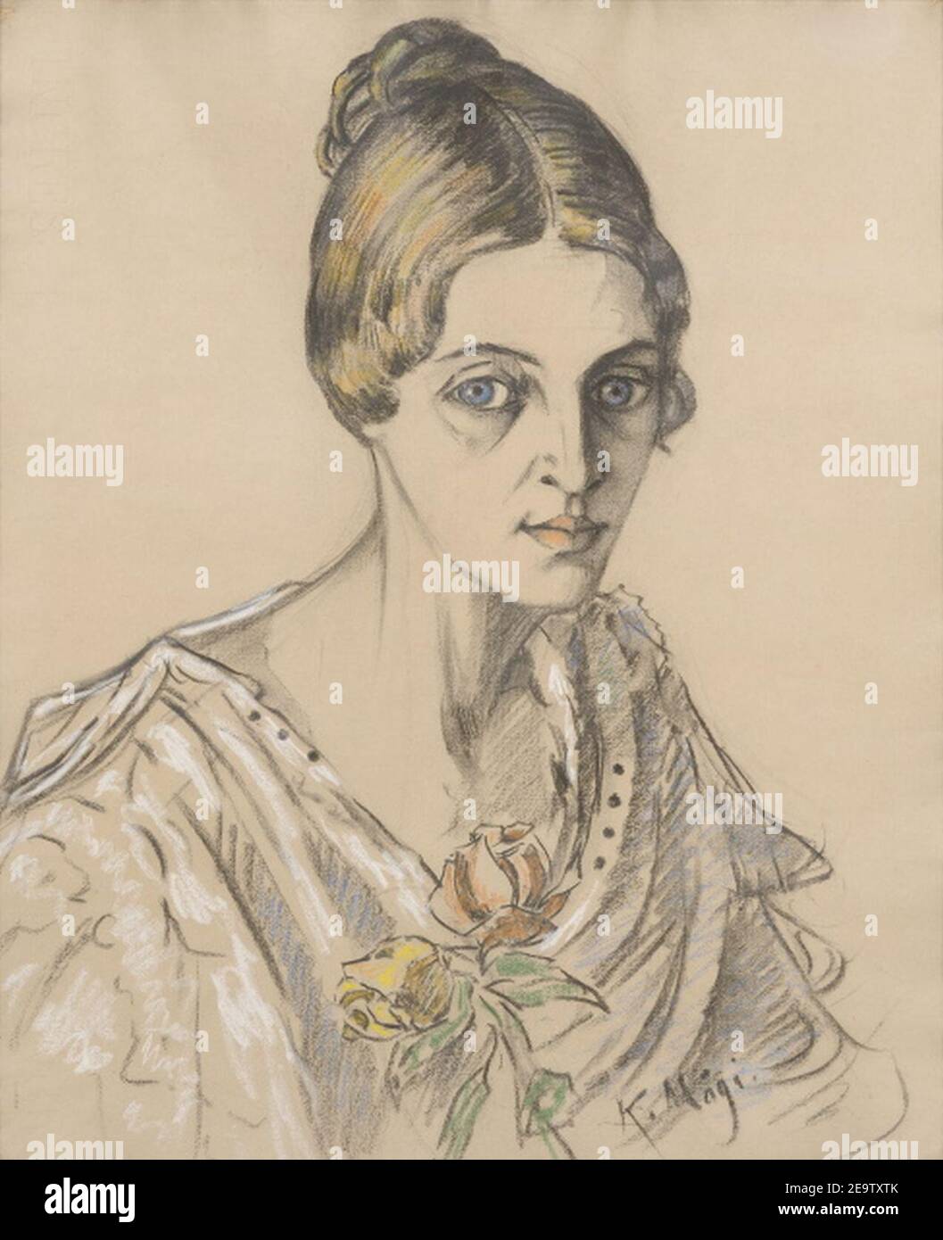 Linda Bachmann is a painting by Konrad Mägi. The artwork depicts a woman with her hair styled in an updo. She is wearing a light-colored, possibly white or ...
