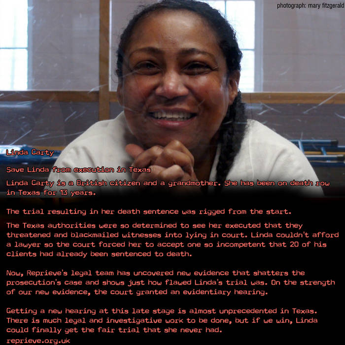 Linda Carty is a British national on Texas' death row from St. Kitts. She could face execution if her request for a retrial is denied.