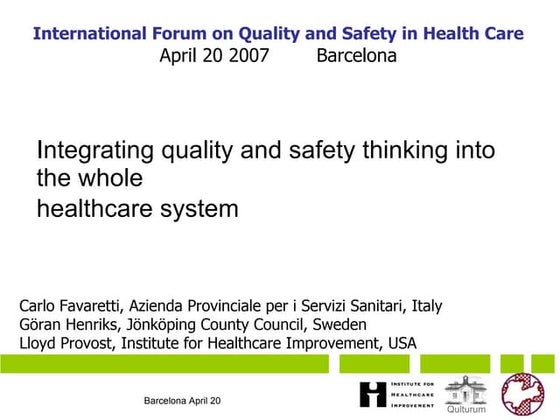 Lloyd Provost. Institute for Healthcare Improvement (IHI); USA. Lloyd P. Provost, Statistician and Senior Improvement Advisor at Associates in ...