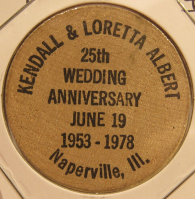 1978 Kendall & Loretta Albert Naperville, IL Wooden Nickel - Token Illinois ; Est. delivery. Thu, Mar 13 - Mon, Mar 17. From Newport, Minnesota, United States.