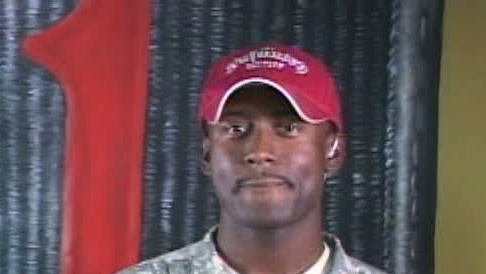 Sgt. Louis Lamar, from Birmingham, Ala., talks to a WIAT-TV reporter in Birmingham, Ala., about why he joined the Army, his duties as a ...