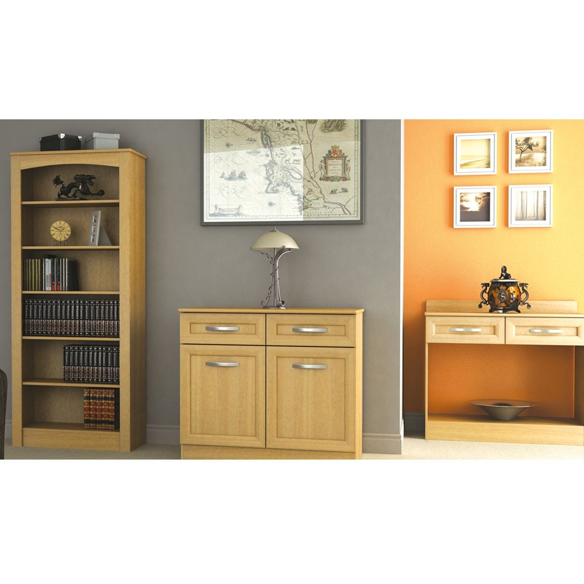 Lucille Low Corner Unit. Low corner unit with a melamine frame and top available in Lissa Oak. 2 cupboard doors with metal handles. Dimensions ...