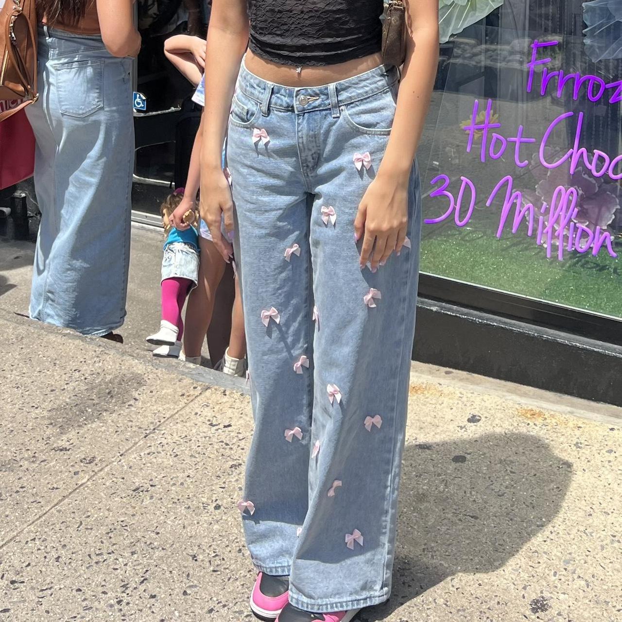 Edikted Lucille Low Rise Satin Bow Straight Leg Jeans | PacSun