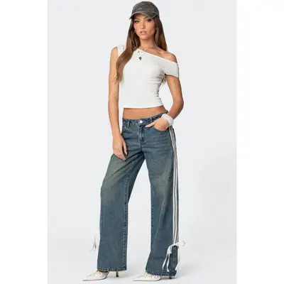 Edikted Women's Lucille low rise satin bow jeans | Arden Fair