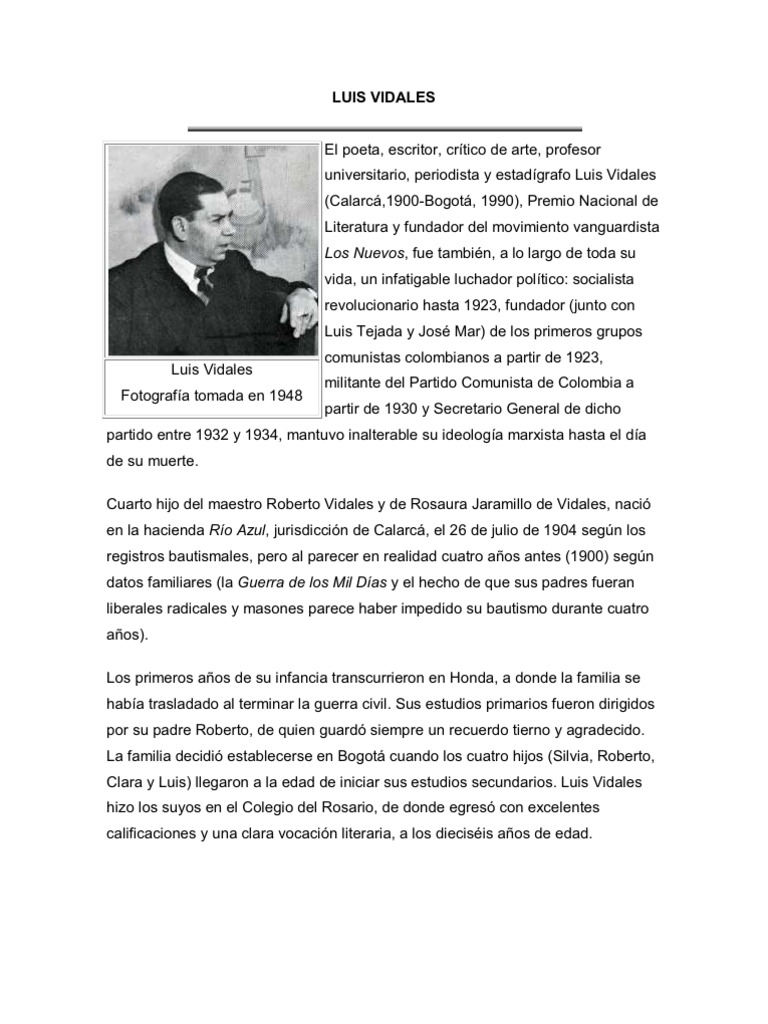 en esta pagina podras encontrar todos la vida del el famoso escritor luis vidales