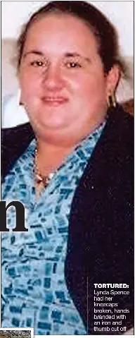 Lynda Spence, 27, was tied to a chair and had her thumb and little finger cut off, her hands burned with an steam iron and her knee caps broken with a golf club.