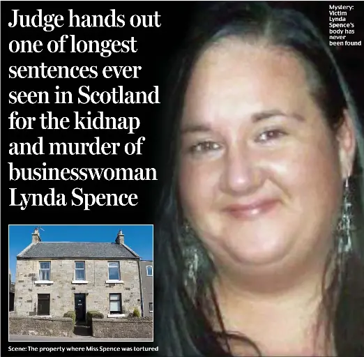 Financial advisor Lynda Spence was 27 when she was last seen in Glasgow in 2011. Two men were jailed for life for the kidnap, torture and murder of Ms Spence but her …