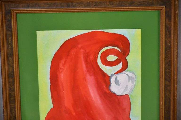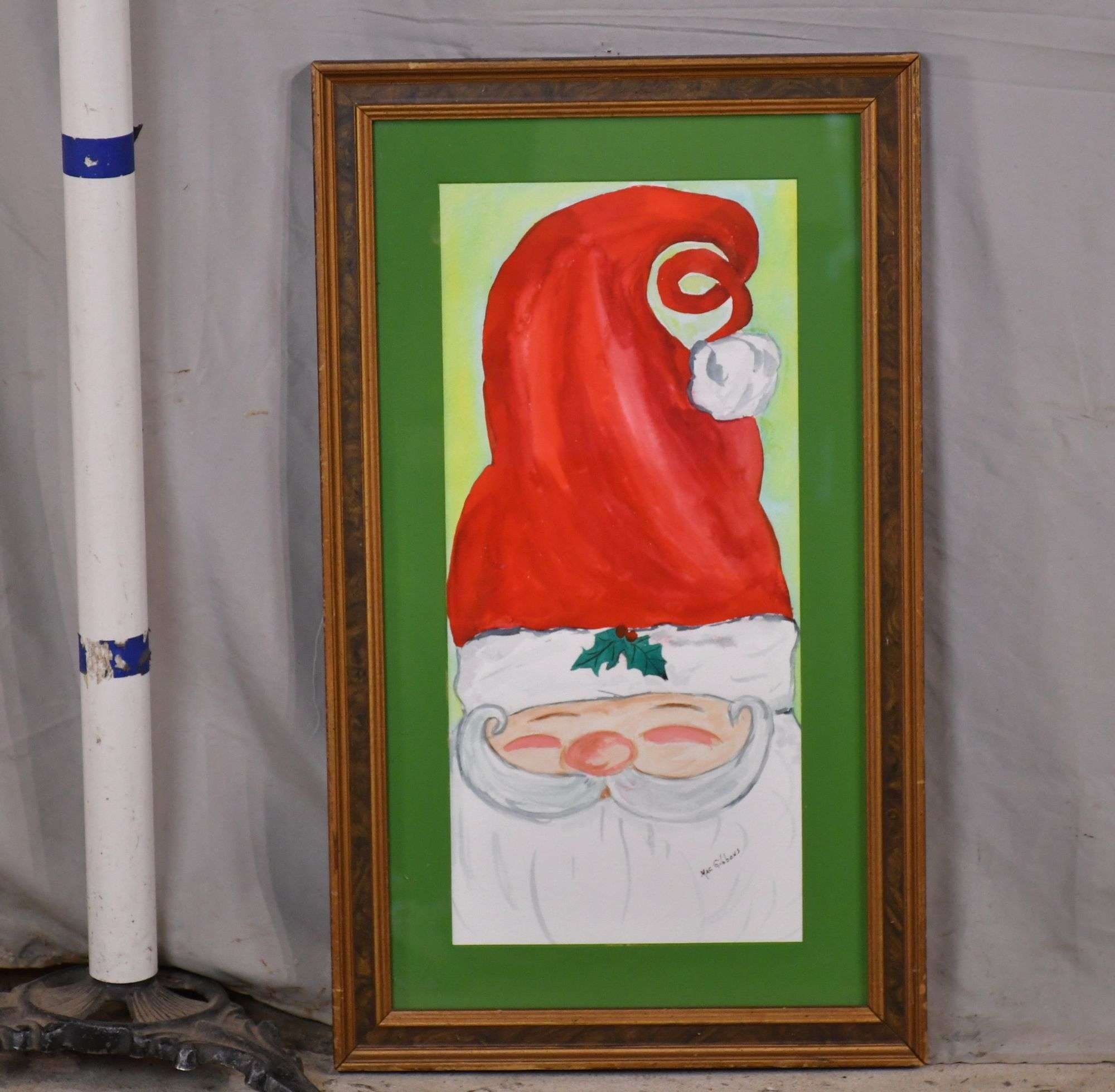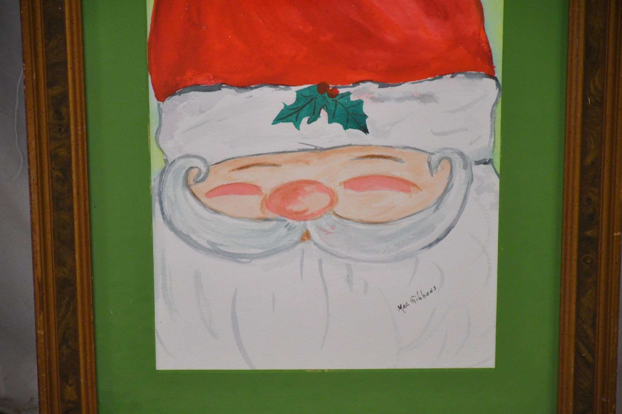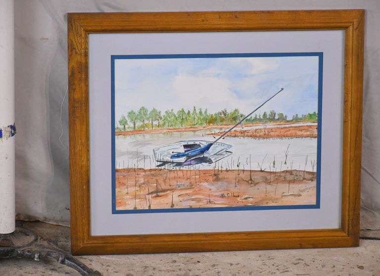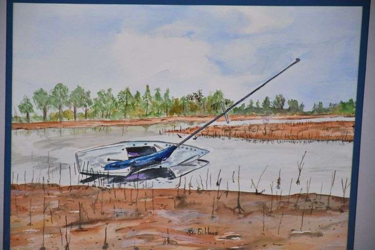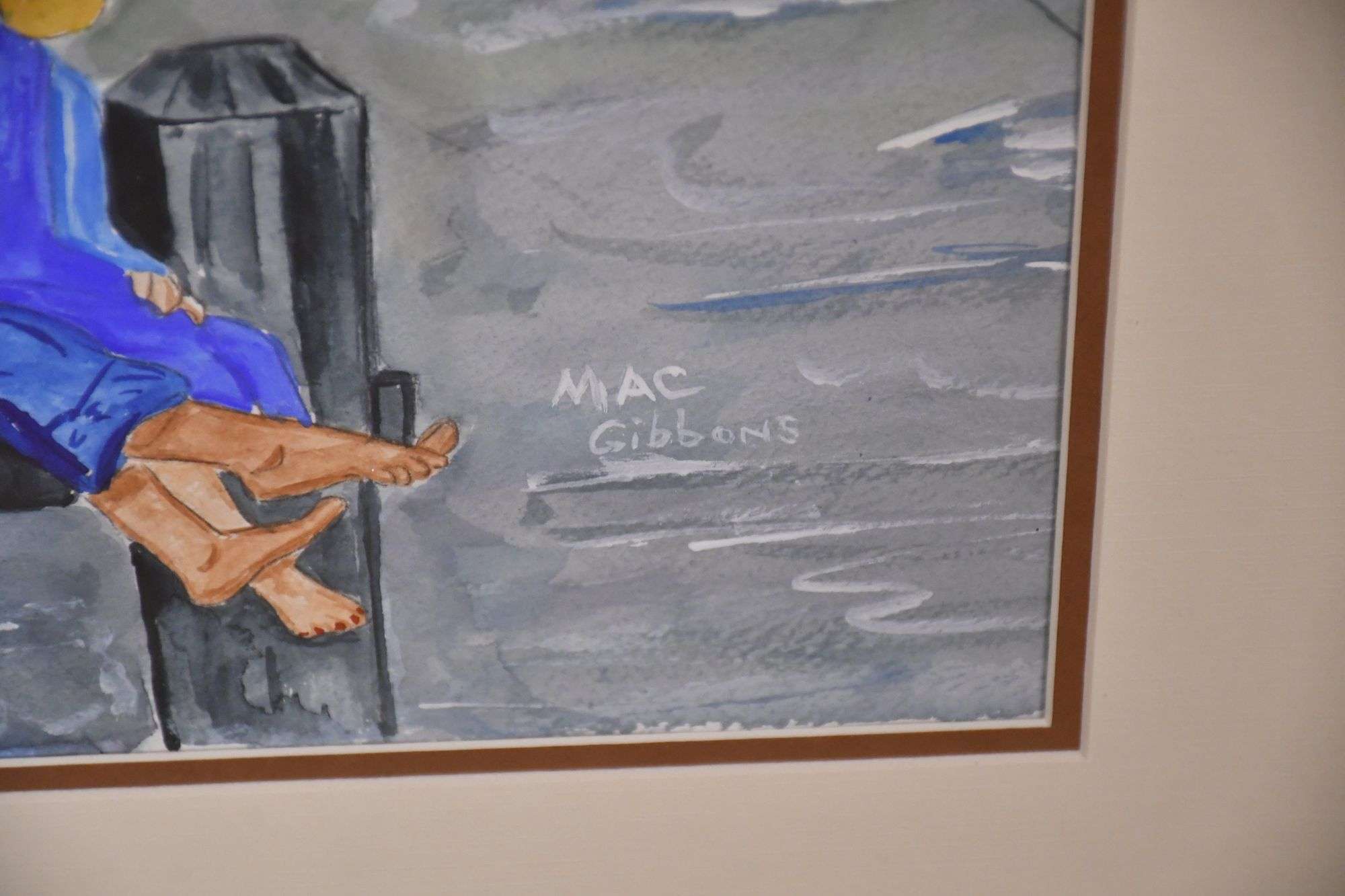 Small framed watercolor of boy and girl fishing by Mac Gibbons