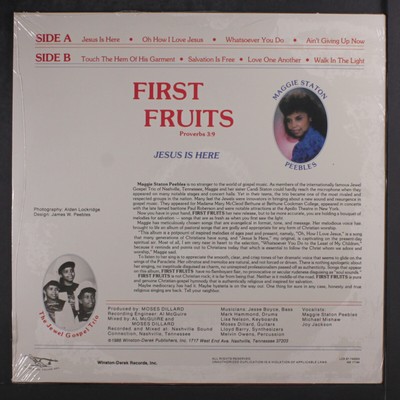 Maggie Staton Peebles* – First Fruits (Proverbs 3:9: Jesus Is Here) ; Country: US ; Released: 1988 ; Genre: Funk / Soul ; Style: Gospel ; Copyright © ...