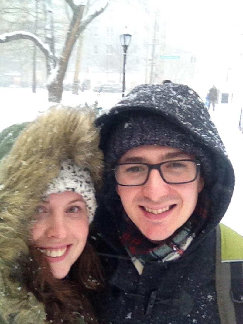 Newly-married couple head off for new life together by hopping on subway train as they leave wedding