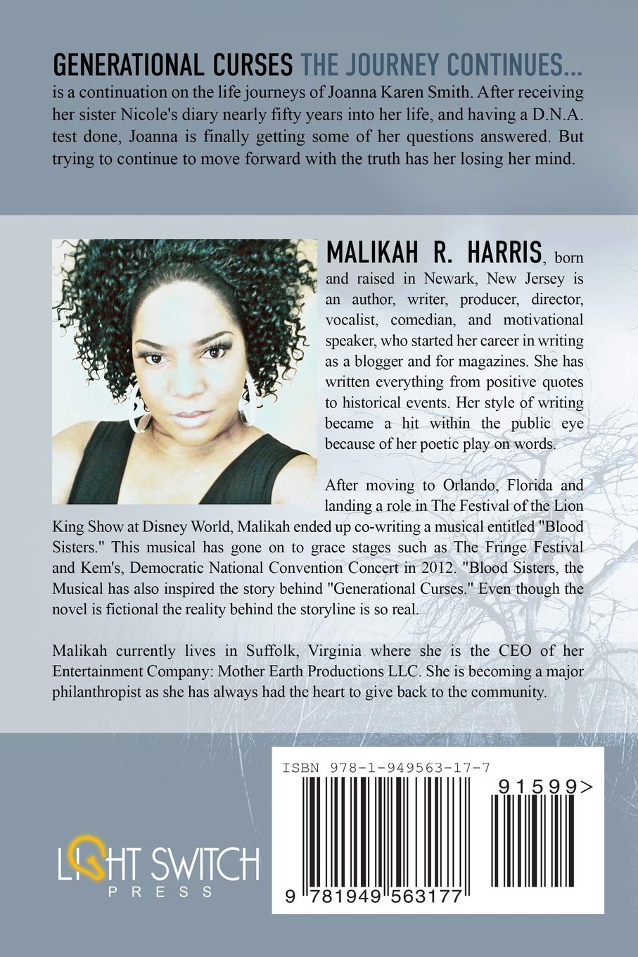 My name is Malikah Harris CEO of Mother Earth Productions LLC and author of Generational Curses the novel!