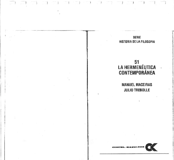 Manuel Maceiras Fafian La hermenéutica contemporánea (Serie Historia de la filosofía) (Spanish Edition) ISBN 13: 9788470464775. La hermenéutica contemporánea ...
