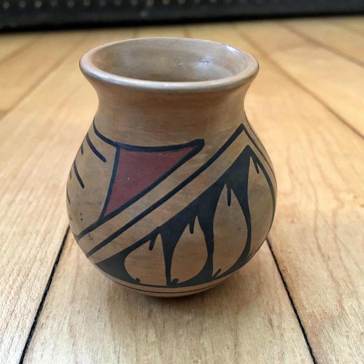 Highlights ... Beautiful piece of Pueblo art signed by Manuela Olivas. Would make a nice mini display piece. Vibrant colors and there are no chips or cracks. Pot ...