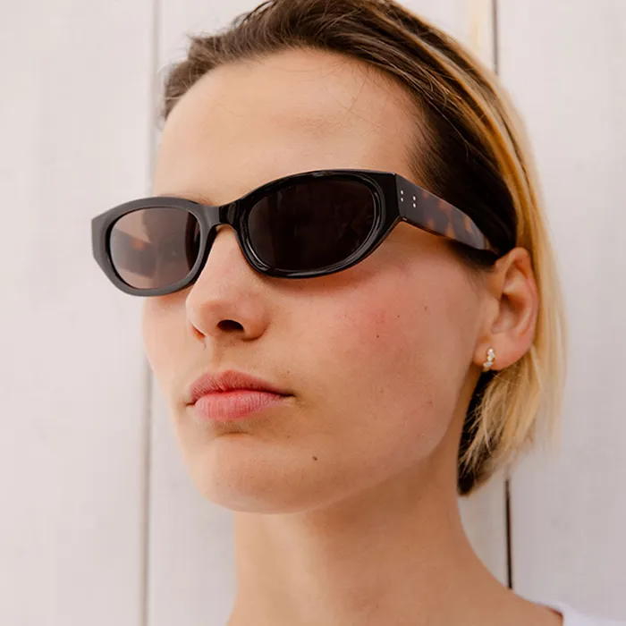 Marcel Black Black combines a cat-eye-inspired design with a rectangular fit, crafted from premium Italian acetate in a rich brown tone.