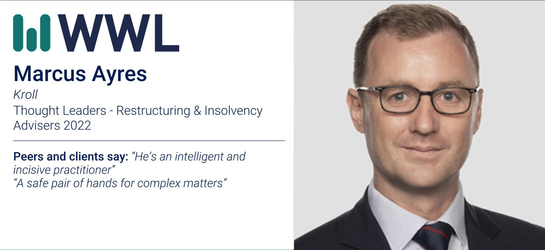 Thought Leaders - Restructuring & Insolvency 2022: Marcus Ayres. Who’s Who Legal. Australia June 7 2022. “He’s an intelligent and incisive practitioner” “A safe pair of …