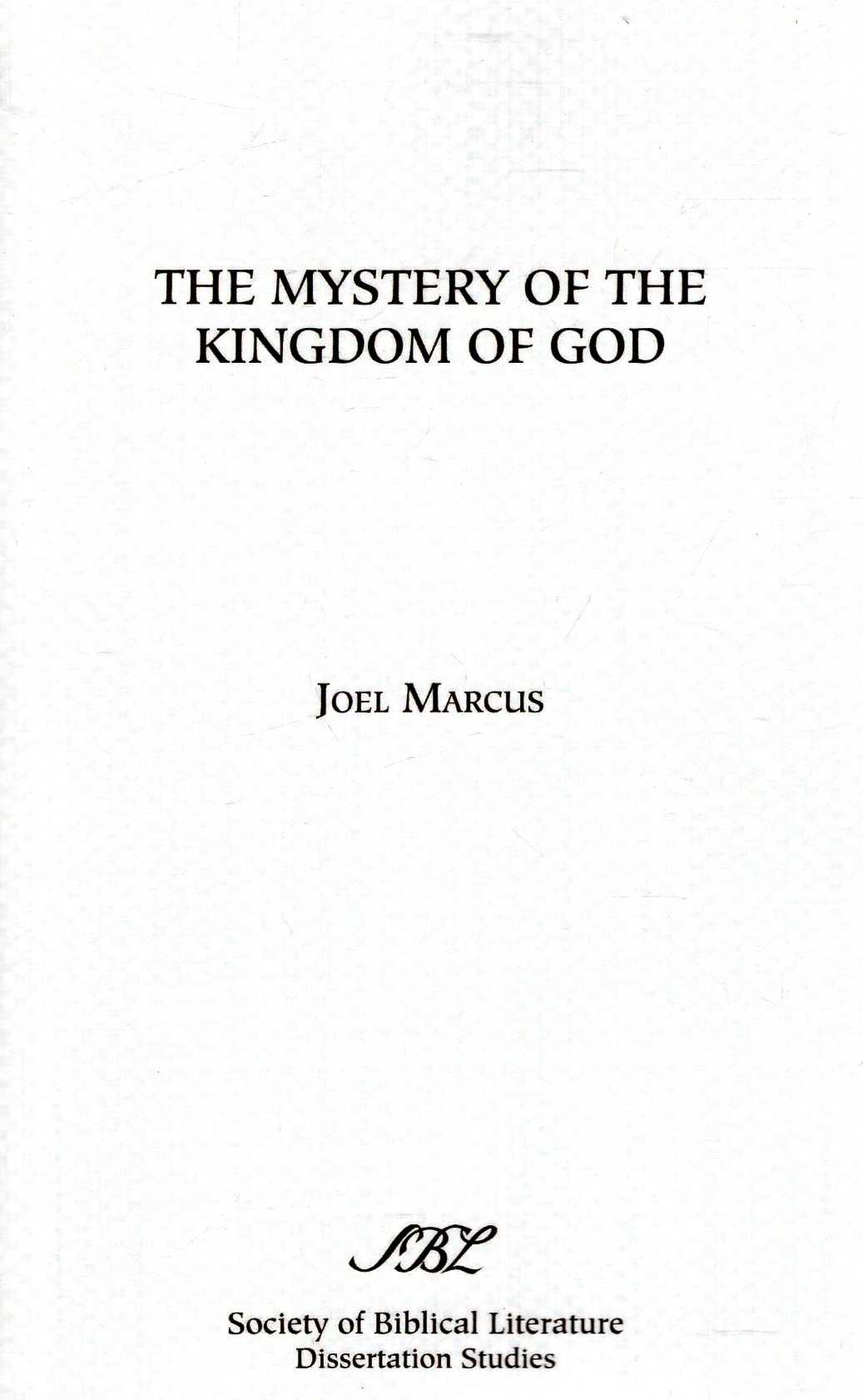 The Mystery of the Kingdom of God ; By: Marcus, Joel ; Price: £18.95 ; Publisher: Scholars Press : 2012 ; Seller ID: 257925 ; ISBN-13: 9780891309840.