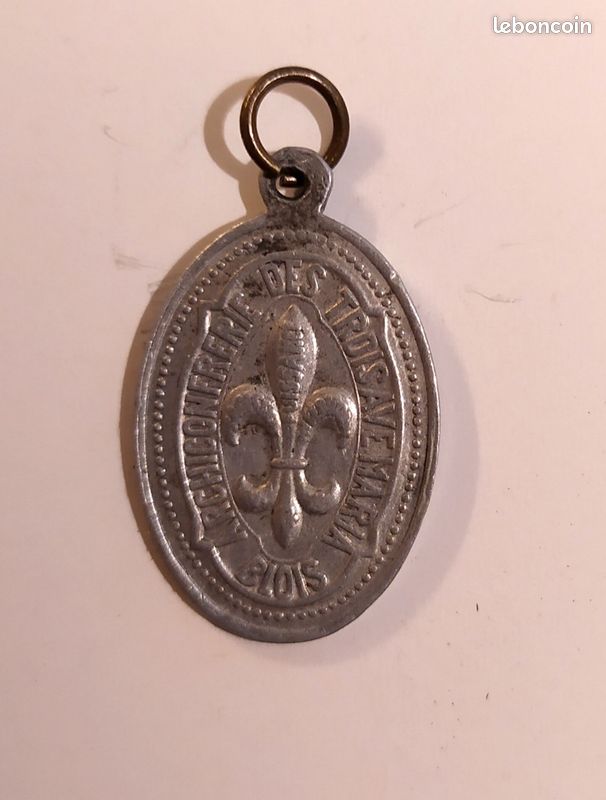 Brotherhood of the three ave maria Blois, fleur de lys. Frence . Religious vintage pendant medallion Holy charm medal · Item details · Shipping and return ...