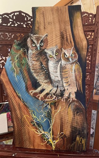Works ; Ominous Owl by Maria Weed · Ominous Owl · 17 x 28 in$400 ; Wildflower Meadow by Maria Weed · Wildflower Meadow · 48 x 24 in$1,450 ; Autumn Waltz by Maria Weed.