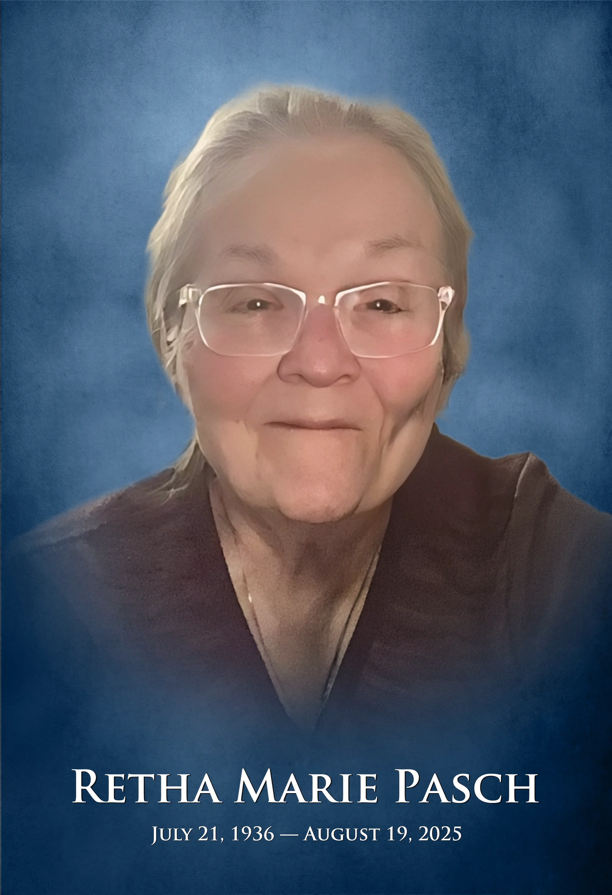 Retha Marie Pasch, beloved wife, mother, grandmother, and friend, passed away peacefully on August 19th, 2025, at the age of 89, she was a ...