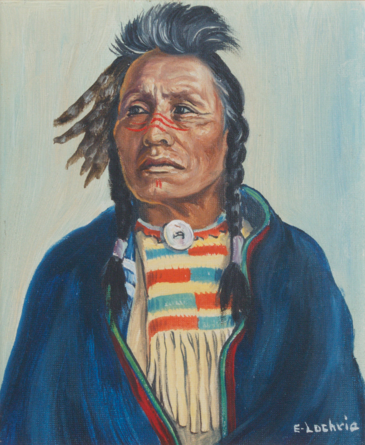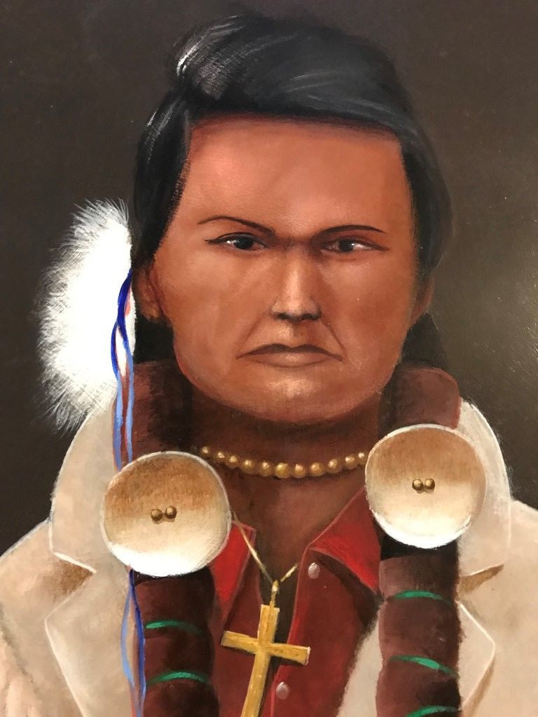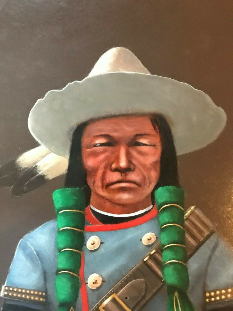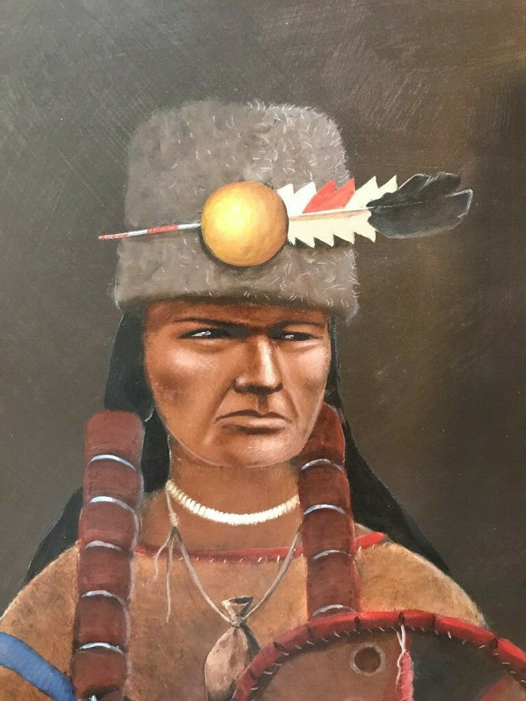 You are buying an original acrylic on hard board by Mario Rabago. This is one of many in my collection of portraits of Nez Perce Indians.