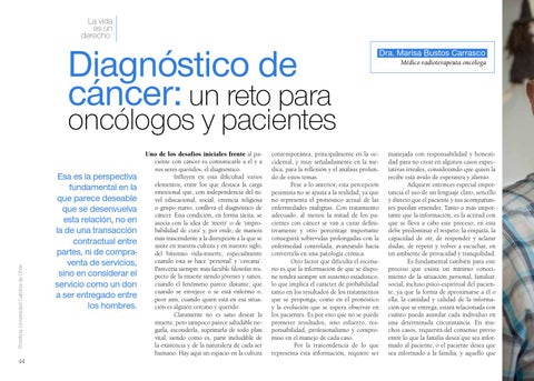 Dra. Marisa Bustos. Radioterapia. Ver más. Formación de Postgrado: Magíster en Bioética. Pontificia Universidad Católica de Chile. Facultad de Medicina.