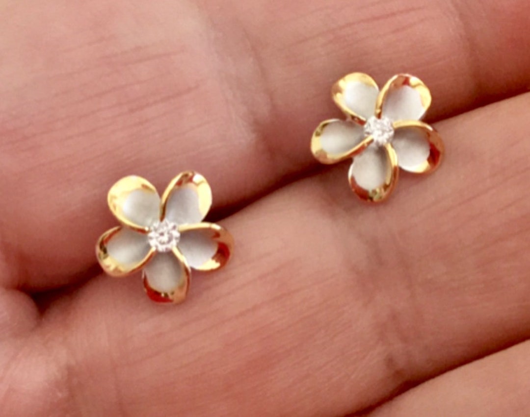 Plumeria Studs, Sterling Silver W/ 14K Gold Pua Melia Earrings ...