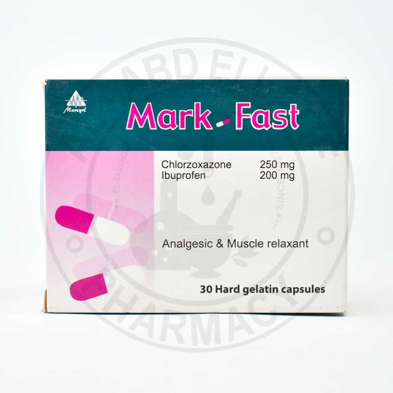 Shop Mark Fast - 30 Capsules at Bloom Pharmacy. Chlorzoxazone 250 mg + Ibuprofen 200 mg.