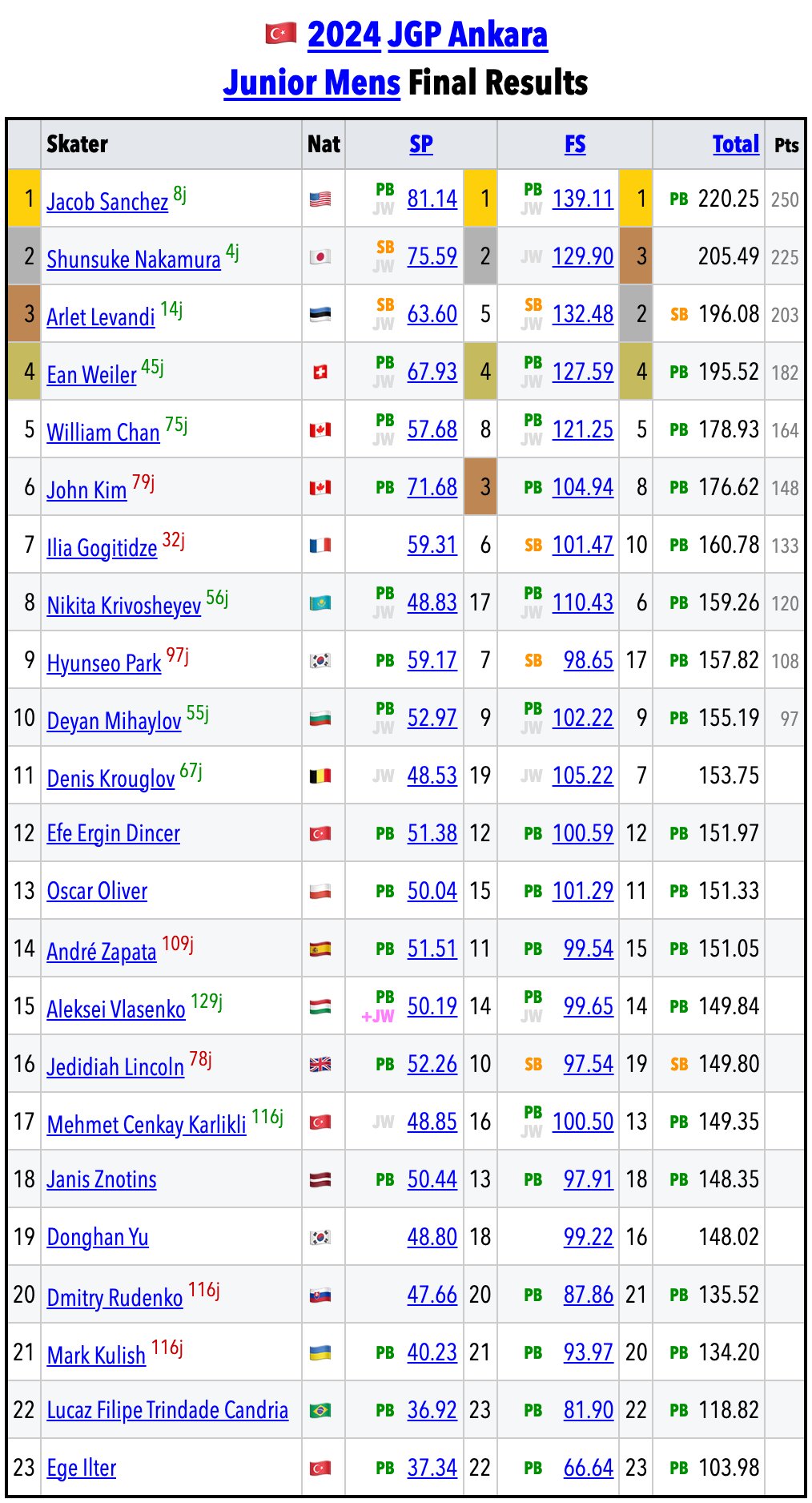 UKR – Mark KULISH /. (ISU BIO). +5 Era ISU Personal Best (Since 2018/19). SP, FS, Total. 2024 JGPTUR · 40.23 · 2024 JGPTUR · 93.97 · 2024 JGPTUR · 134.20 ...