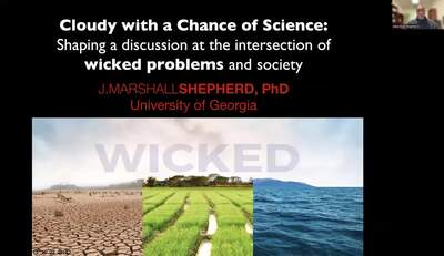 Marshall Shepard presented "Cloudy with a Chance of Science: Shaping a discussion at the intersection of wicked problems and society"