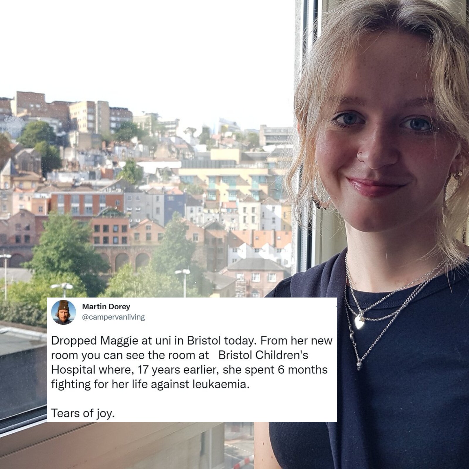 Girl with cancer is now healthy, and her college dorm has view of her old hospital room