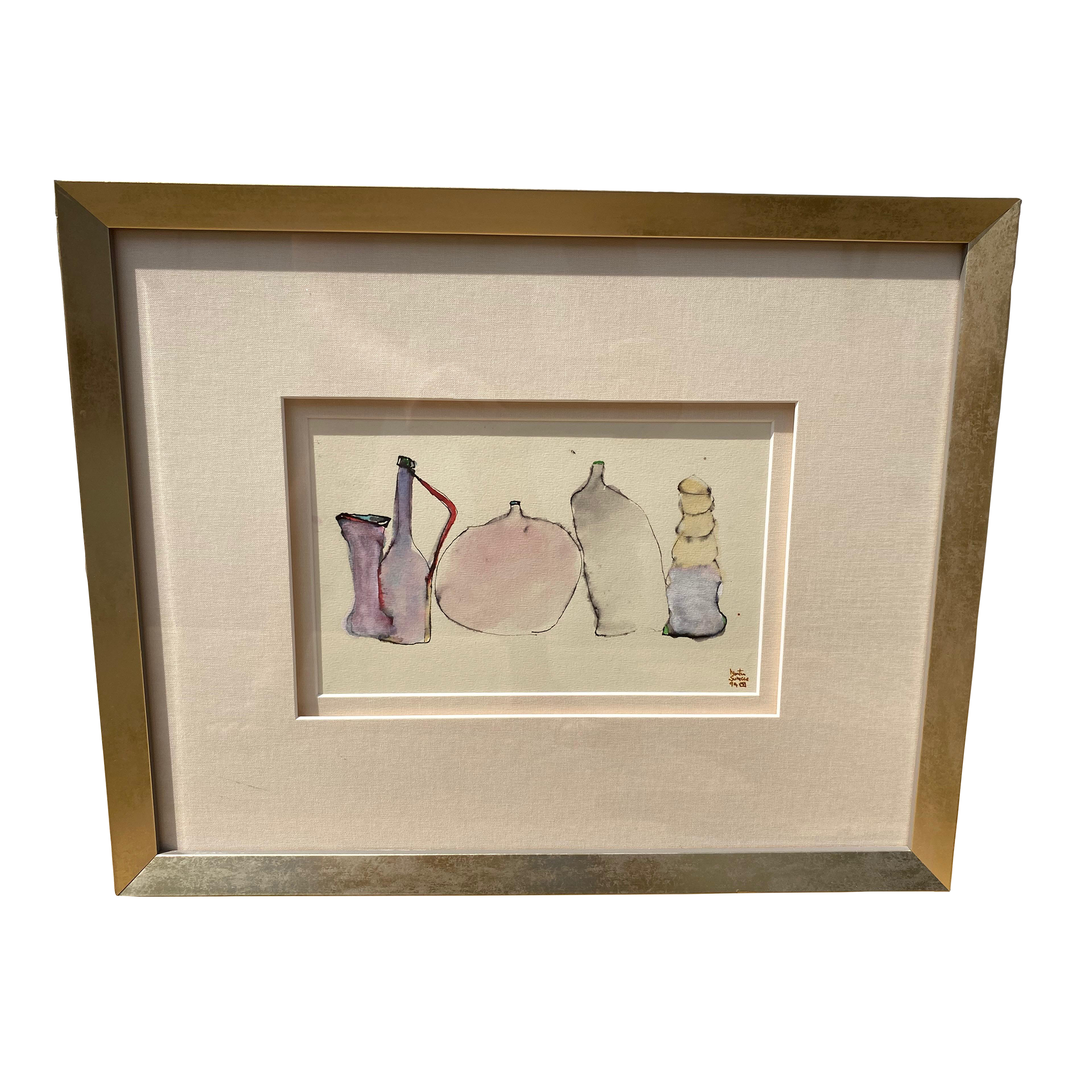 1990s "Bottle Still Life" Original Painting on Paper by Martin ...