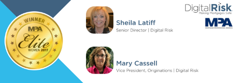 Mary Cassell, VP, Originations and Sheila Latiff, Senior Director, Risk & Compliance at Digital Risk, LLC have been named on MPA's Elite Women Awards for 2017.