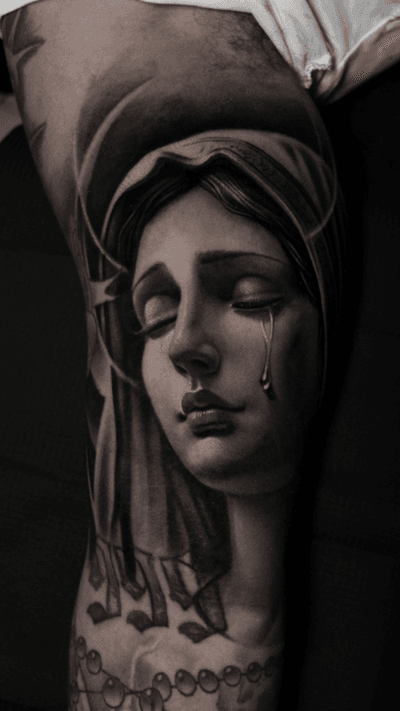 Mother Mary done by Steve Boltz : r/traditionaltattoos - Reddit