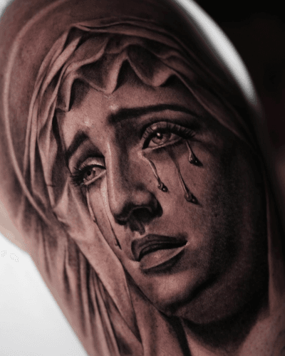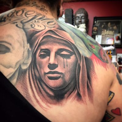 Mother Mary done by Steve Boltz. r/traditionaltattoos - Mother Mary done by Steve Boltz.