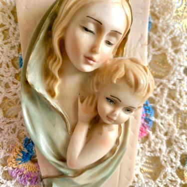Vintage Madonna Mary Plaster Religious Handpainted Wall Plaque