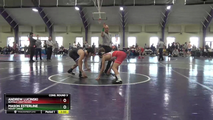 Round 3 - Mason Esterline, Mount Union vs Andrew Lucinski,. 2:00. 141 lbs Cons. Round 3 - Mason Esterline, Mount Union vs Andrew Lucinski, Buffalo-unattached.