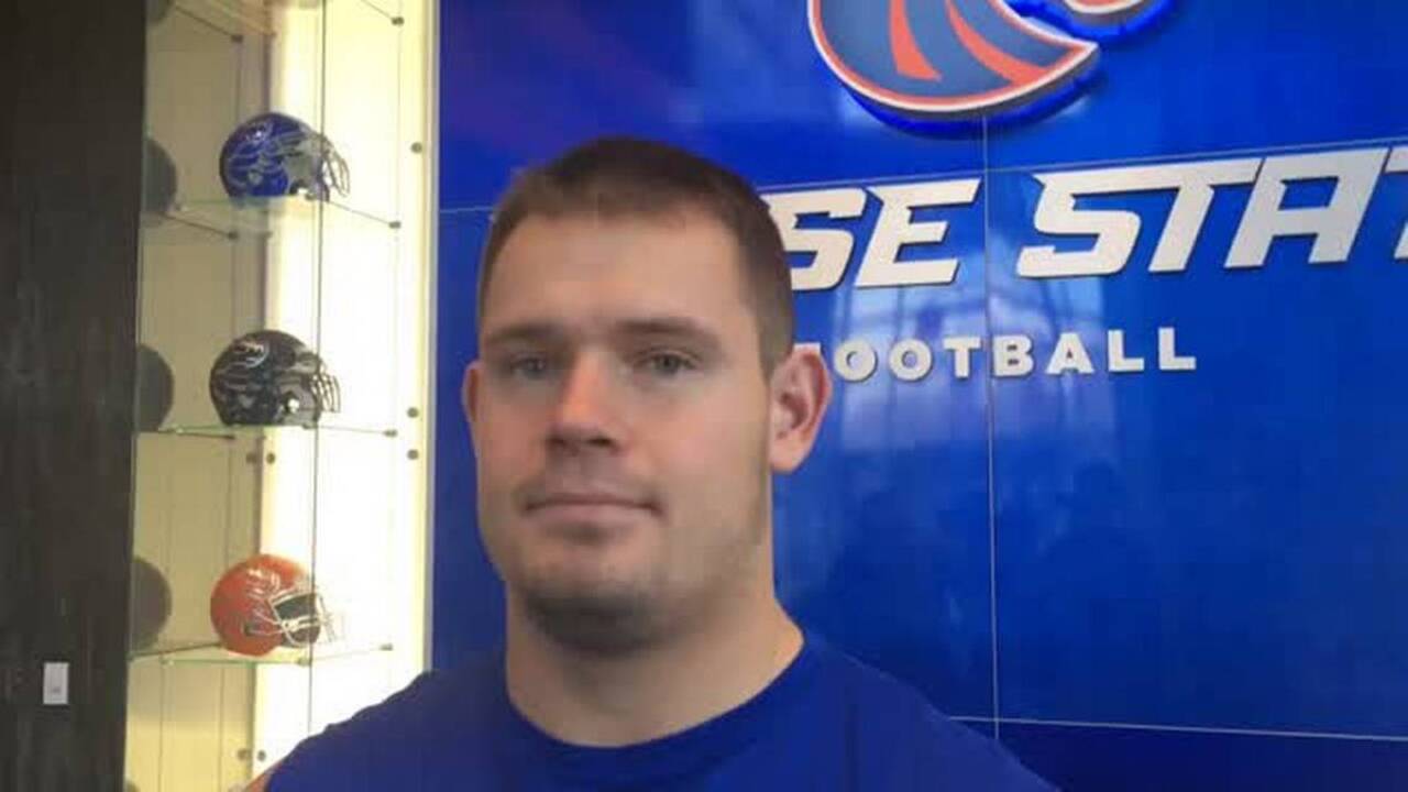 Boise State junior center Mason Hampton discusses his group and his quest to take over the starting job in the middle of the Broncos' offensive line Aug.