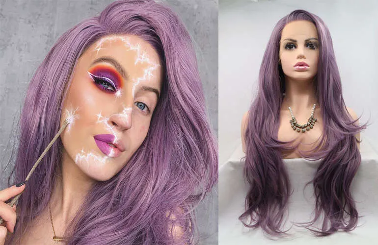 Melody Long Silky Straight Synthetic Lace Front Wigs Silver White ...