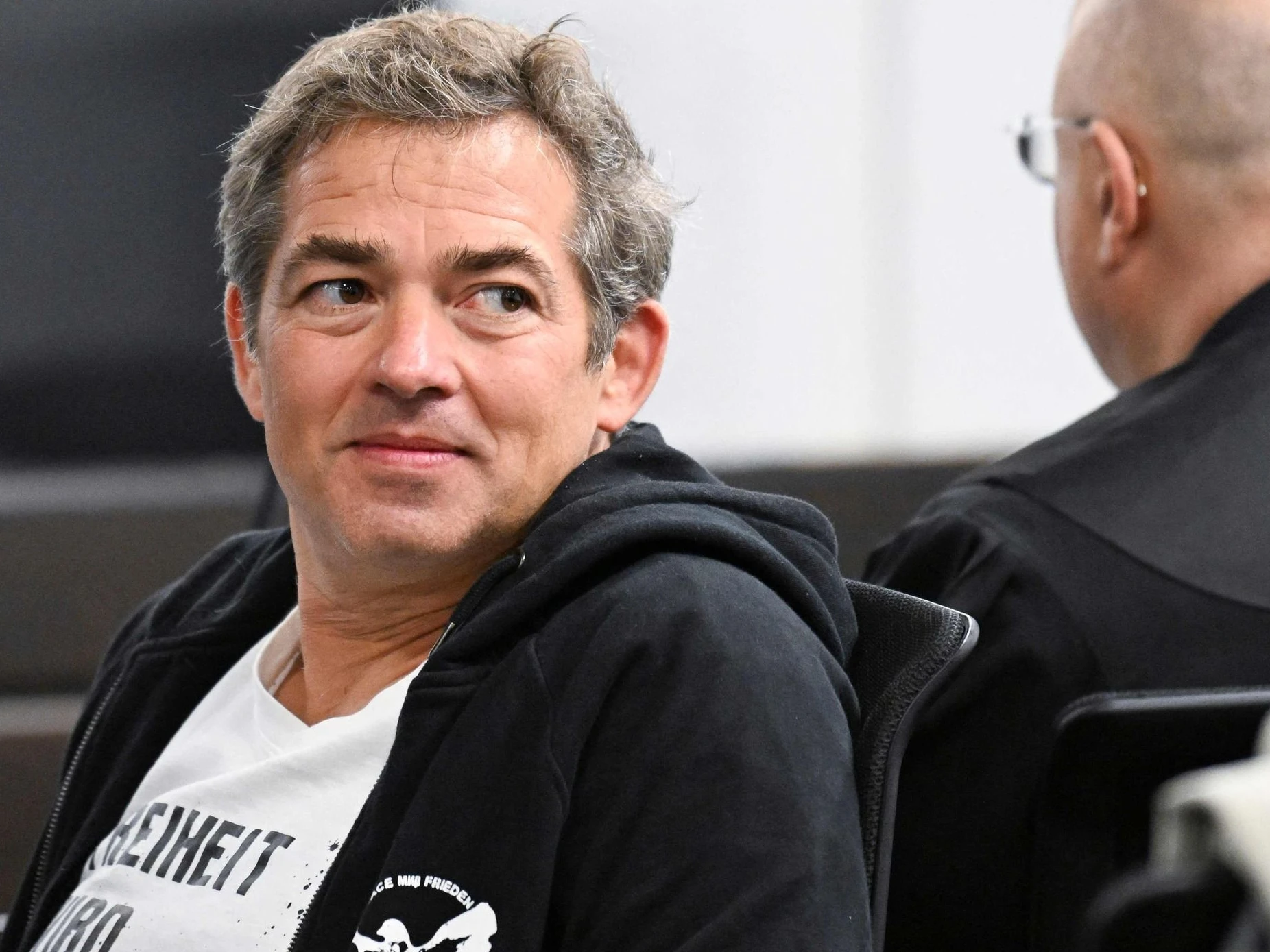 31 July 2025, Baden-Württemberg, Stuttgart: Michael Ballweg, founder of the "Querdenker" movement, sits through the courtroom before the ...