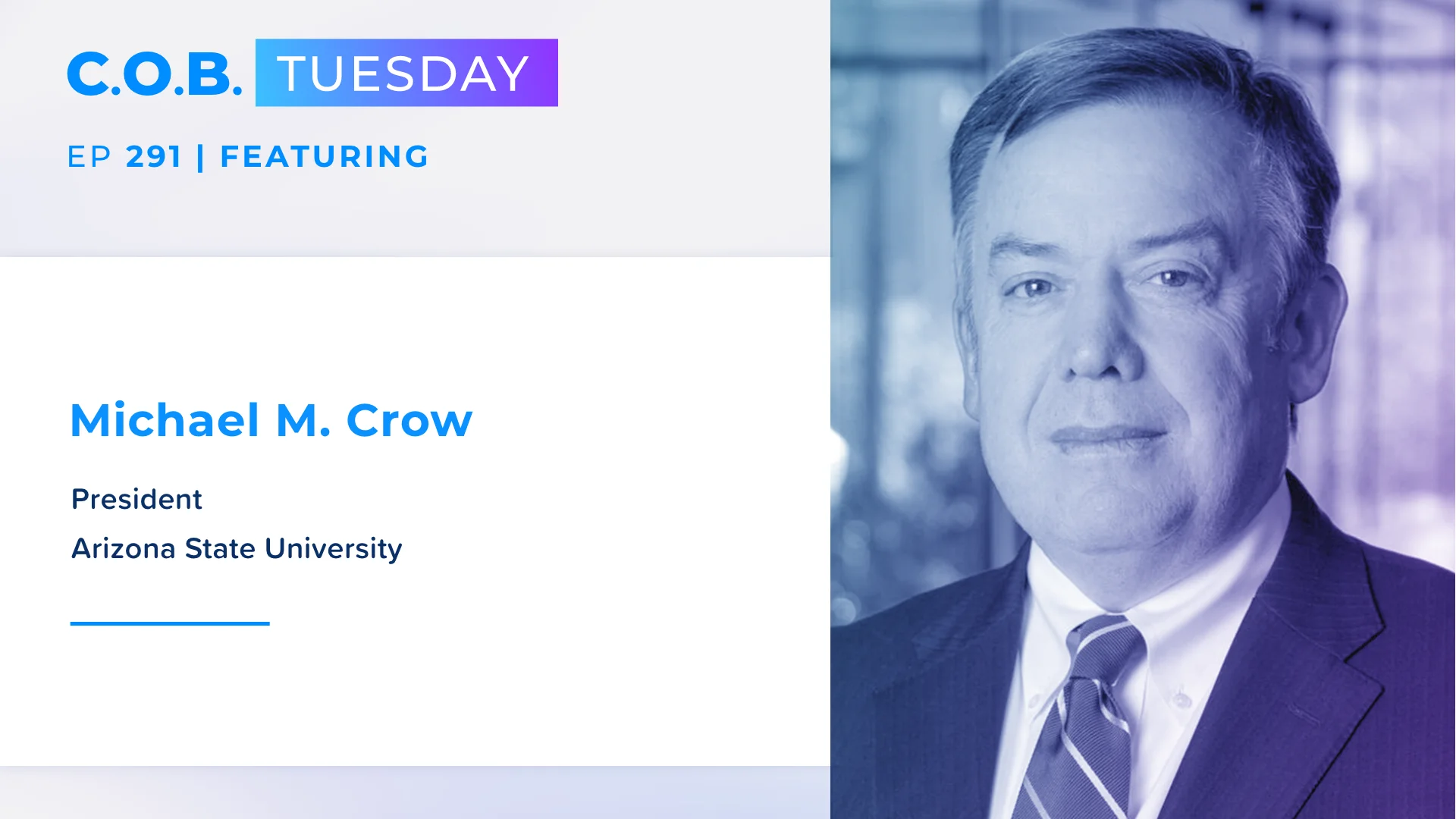 Michael Crow. President, Arizona State University. Michael M. Crow is an educator, knowledge enterprise architect, science and technology policy scholar and ...