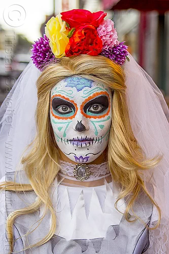 Michael Paim and Louise with sugar skull makeup. Photo taken at the Dia de los Muertos procession in the Mission (San Francisco) on Nov 2, 2015.