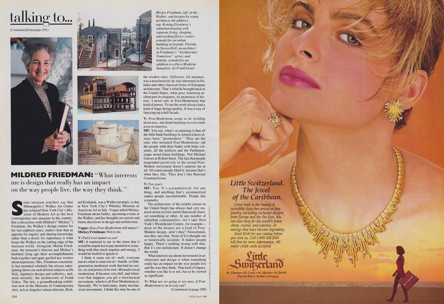 Mildred Friedman, a curator at the Walker Art Center in Minneapolis in the 1970s and '80s who helped both the museum and the contemporary design and ...