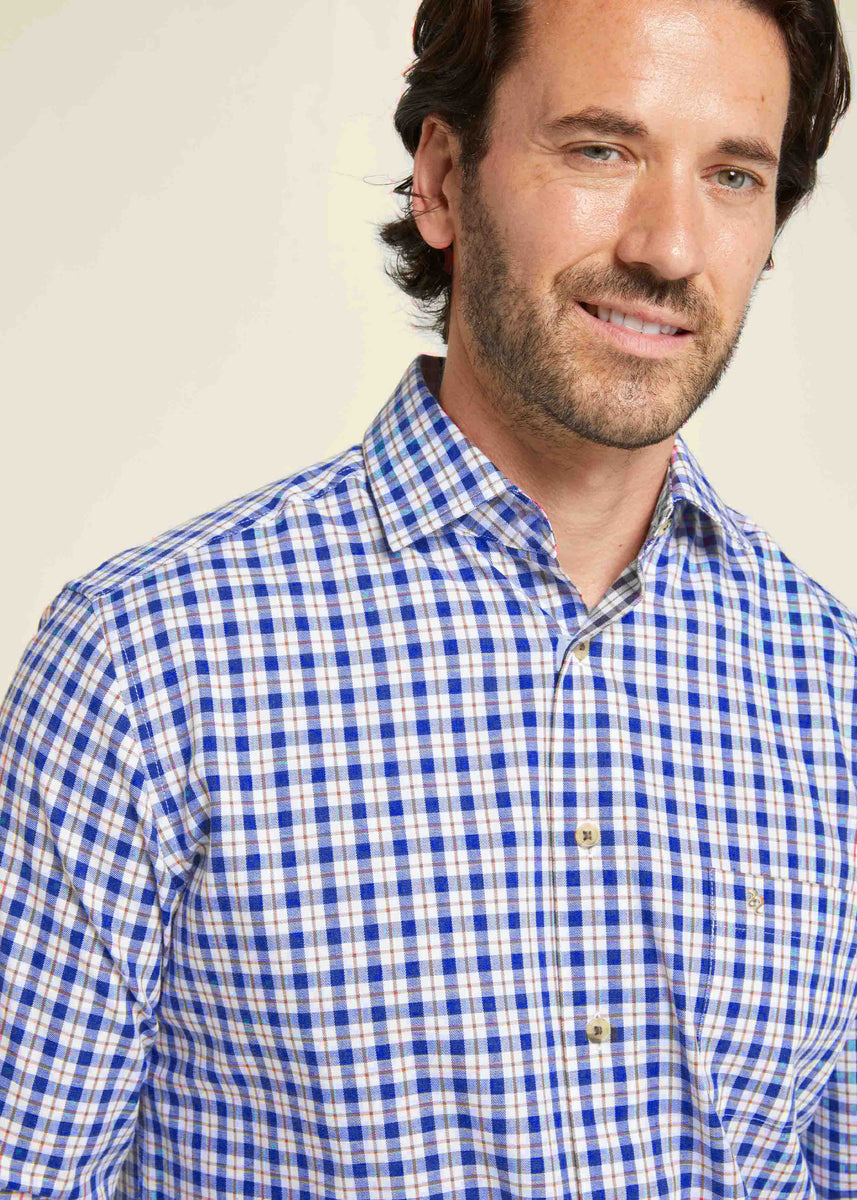 Miles Cotton Classic Fit Long Sleeve Velcro Shirt - True Blue Check