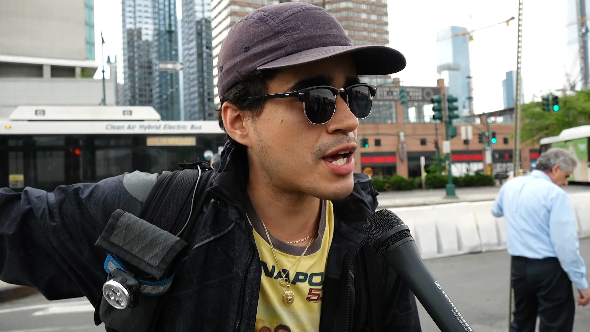 Matthew Miles Goodrich is the chief operating officer of the Sunrise Movement. People participate in a “Climate Justice Means Free Palestine!” rally.