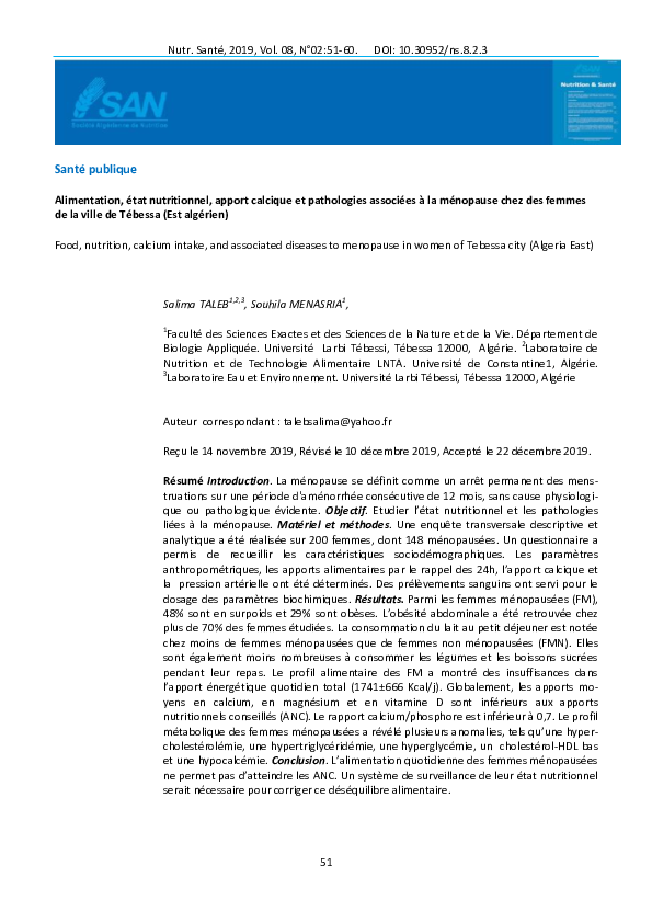 Mohamed Mammad. 2014. La relation diabète-obésité-ménopause peut altérer et gravement l'adaptation physiologique post-ménopausique de la femme et peut par la ...
