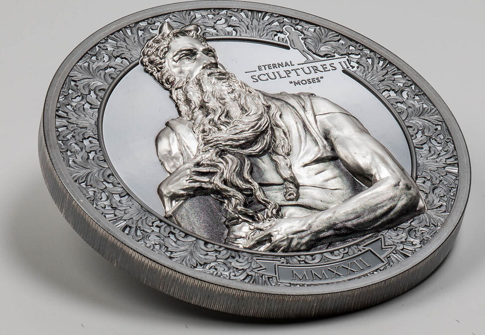 Moses Silver Coin. Moses Silver Proof Coin. Each coin is encapsulated and housed in a custom display case from the ...