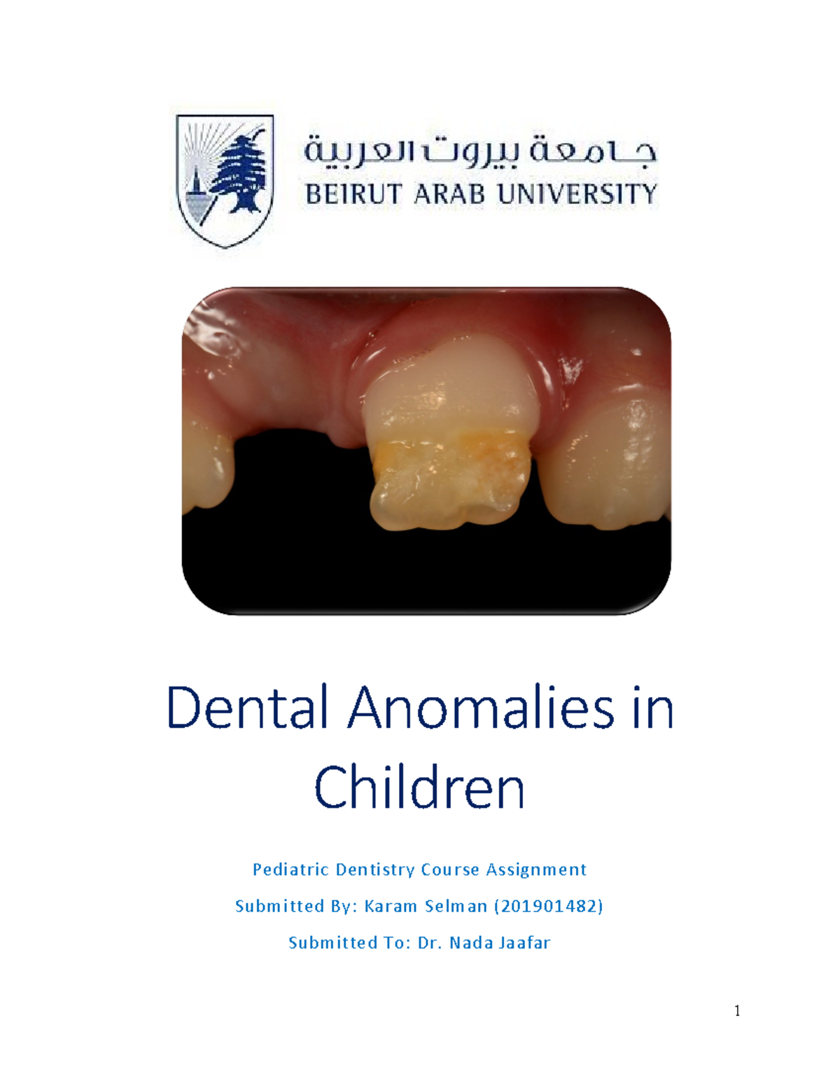 Nada Jaafar, Department of Pediatric Dentistry, Faculty of Dentistry, Beirut Arab University, Beirut, Lebanon. E-mail: dr.nada.jaafar@gmail.com. Received ...